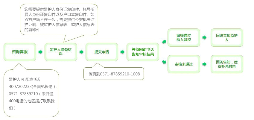监护人可以登陆官方网站,下载对应表格,填写后传真给客服。